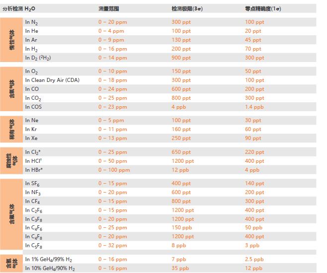 tigeroptics HALO KA水分分析仪是一款运行成本低且功能强大的气体分析仪。采用 Tiger Optics公司知名的基于时间的光腔衰荡光谱技术,分析仪性能稳定、无漂移且快速响应。您可以稳定、快速、精确地分析验证最低至100ppt的水分含量,您会发现我们的系统非常容易安装、快速便捷、维护量极少并且内置零点验证功能。 tigeroptics HALO KA水分分析仪专业于大宗气体和特殊气体中的水含量分析,包括半导体制造过程中的锗烷-氢气混合气和其他的特殊混合气。通过将HALO KA H2O与HALO OK ppt级的氧气分析仪联合使用,同时对两种关键污染物分析控制,您将充分体会光腔衰荡光谱技术(CRDS)的诸多优势。