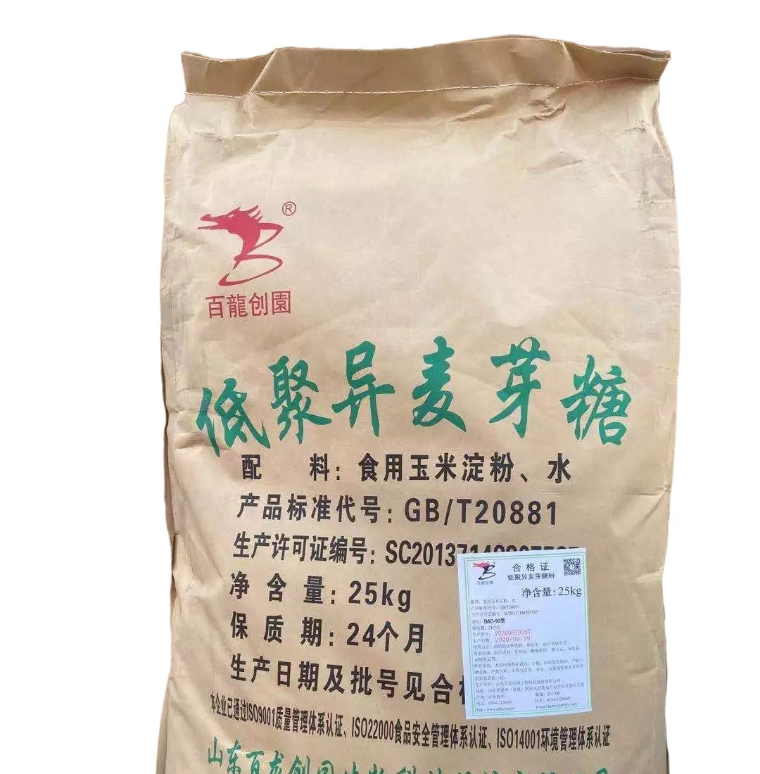 低聚异麦芽糖(IMO)又称为异麦芽低聚糖、异麦芽寡糖、分枝低聚糖等,呈现为白色粉末状,带有淡淡的甜味,口感绵软似白糖。可用温开水冲饮,也可加到牛奶、咖啡等饮料中配合饮用, 甜度以白砂糖甜度为100,低聚异麦芽糖与其糖类甜度对比如下(20℃之下,与蔗糖10%溶液比较):