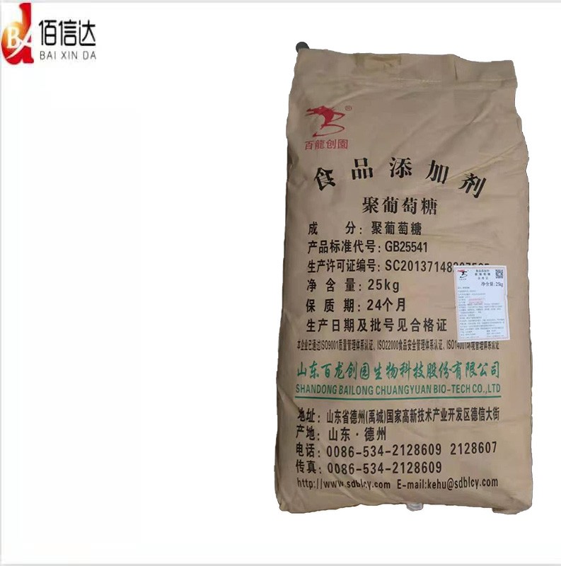 聚葡萄糖又称:聚右旋糖,聚葡萄糖 聚葡萄糖为白色或类白色固体颗粒,易溶于水,溶解度70%,10%水溶液的PH值为2.5-7.0,无特殊味 项目标准: 色泽:乳白色或浅黄色 形状:颗粒状 气味:具有本品特有的气味,无异味 滋 应用范围: 面制品:馒头、面包、糕点、饼干、挂面、方便面等。添加量:0.5%~10% 肉制品:火腿肠、午餐肉、三明治、肉松、馅料等。添加量:2.5%~20% 乳制品:牛奶、豆奶、酸奶、配方奶粉等。添加量:0.5%~5% 饮 料:各种果汁、碳酸饮料。添加量:0.5%~3% 酒 类:添加到白酒、黄酒、啤酒、果酒中,生产出高纤维酒。添加量:0.5%~10% 调味品:香辣酱、果酱、酱油、醋、火锅料、方便面汤料等。添加量:5%~15% 冷冻食品:冰糕、冰棍、冰淇淋等。添加量:0.5%~5% 休闲食品:布丁、果冻等;添加量:8%~9% 应广告法严格要求产品详情请咨询客服人员