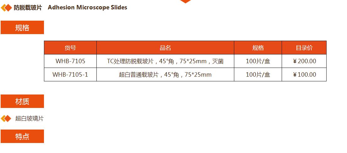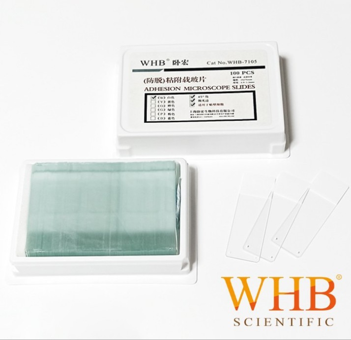 WHB防脱载玻片用于细胞培养、病理学组织、细胞制片、液基细胞学薄层制片,尤其是在液基细胞学薄层制片中防脱片的质量至关重要。