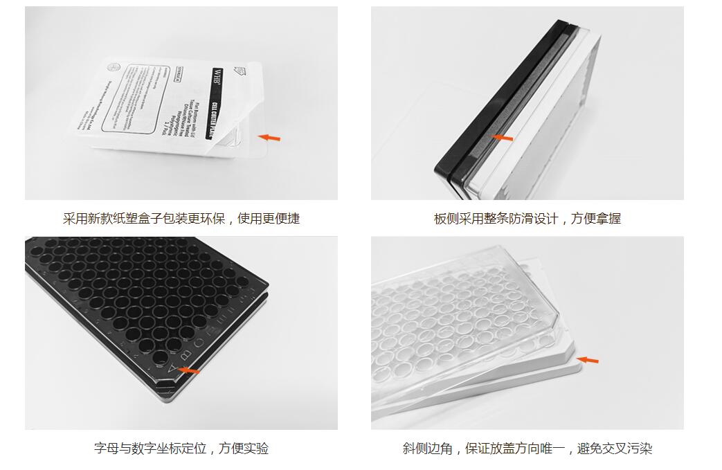 全黑全白96孔板由高品质聚苯乙烯材料,辅以超精密模具及全自动化生产工艺生产,本产品应用于实验室细胞培养,优异的光学性质便于显微观察。表面经过TC处理,细胞贴壁效果更好。