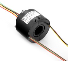 过孔式滑环又称空心轴滑环、中空导电环,是中心带孔的一系列导电滑环的统称,方便液压通道、气压通道或传动轴的安装。偲诺过孔式滑环的通孔直径从3mm到5000mm可选,电流2A到1000A可选,同时可以兼容诸如以太网、USB、HDMI、SDI、Canbus、profibus、power等多种信号,满足多功能系统的需求,并且在高低温、防震、防腐、防水等应用要求上积累了丰富的设计生产经验,能全面满足客户不同传动方案。 优势: · 采用先进的纤维刷多点接触,摩擦低,寿命长 · 传输数字和模拟信号,与数据总线协议兼容 · 通孔直径:3mm-1000mm可选 · 电流:1-10000A可选 · 通路数:1路-300路可选 · 防护等级:IP51-IP68可选 · 工作温度:-55~+250℃可选 · 支持集成多种信号如:以太网、USB、HDMI、SDI、Canbus、profibus、audio. ECN012 典型应用: ◆工业机械-加工中心,旋转工作台 ◆ 机器人,雷达等 ◆起重设备塔楼,卷线轮,测试设备 ◆ 制造和控制设备 ◆包装机械,货盘机,数控机床等 ◆ 展览/显示设备 ◆磁性传动器,处理程序控制设备 ◆ 医疗设备 ◆ 转台式传感器,应急照明灯 可选项: ◆工作速度 ◆电流,电压 ◆更多通路数 ◆ 连接端子 ◆ 防护等级 ◆ 出线方向 ◆信号及电源可单独或混合传输