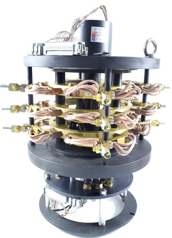 中心集电器又称大电流滑环、大功率滑环、碳刷滑环、船用滑环,可传输100A及以上的大电流,主要应用于船舶机械、工程机械、港口机械,如船用吊机、海洋平台吊机、电缆卷筒、推进器、钻井平台等复杂工况。 偲诺电子拥有丰富的设计及生产大电流中心集电器的经验,采用独特的结构设计及科学的模拟计算,充分保证每个环路过载电流,确保产品长期传输电流的稳定;同时针对不同的应用领域采用不同的整体设计思路,根据现场使用工况给出合理维护窗口及方法,产品尺寸秉承小而精的设计理念。 偲诺的中心集电器具有高导电率、高寿命、防腐蚀、性能稳定、维护方便,高防护等级、耐高低温,抗震动、抗冲击、耐高压、低电气噪音、信号传输损耗低等特点。 特征 · 大电流采用接线柱连接,接线方便; · 信号环采用精密刷线设计,结构紧凑,信号稳定; · 触点材质采用进口铜石墨,性能稳定,粉尘少,寿命高; · 耐候性优良,电气安全性高; · 特殊设计维护方便; 可选项 · 电流1-2000A可选 · 电压24-200000V可选 · 可与信号环混合设计,同时可传输RS、USB、以太网等特殊信号 · 可与编码器、光纤、高频旋转接头混合设计 BHCN-C-07P-37S 产品特点 · 安全载流大 · 寿命长,易维护 · 耐候性优良,防护等级高 · 可集成各类信号 可选项 · 通路数 · 电流大小 · 防护等级 · 集成信号类型 典型应用 · 船用吊机 · 推进器 · 钻井平台