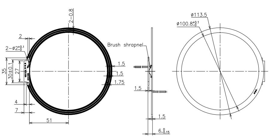 作为过孔滑环的另一种形式,偲诺电子盘式滑环的设计适用于垂直空间有限而水平空间限制较少的地方。这种类型的滑环提供了超薄厚度特殊有限的安装空间。厚度可达4毫米。通孔和无孔是可选的。 独特的高真空密封技术和贵金属刷确保了滑环的高可靠性传递和旋转性能。薄片式滑环具有转矩小、摩擦小、噪音低、寿命长等优点,主要用于与功率一起传输精确信号。 优势 · 通孔尺寸: 0 ~ 600毫米 · 厚度: 6毫米~ 51毫米 · 旋转速度: 0 ~ 500 rpm · 寿命: 1000万 · 信号集成: RS、音频、视频、USB、以太网 PSCN100-03S盘式滑环 CENO盘式滑环由于其轮廓也称为盘形滑环。极薄是该系列滑环的特征。在安装空间高度有限制的应用上非常受欢迎。盘式滑环沿径向分布环以节省轴向空间。