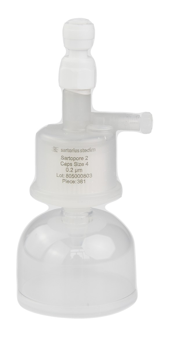 德国赛多利斯公司出品的终端过滤器,0.22μm的滤膜孔径,能完成对细菌,微生物和颗粒物的全面阻截和过滤。为双层醋酸纤维素膜,不含表面活性剂,对蛋白的吸附极低。在终端过滤器的顶端设计有带PTFE膜的排气装置,过滤时,打开排气口,气泡可以随时排出,避免产生气阻,因而保证了过滤器的高流速,把排气口的盖子拧紧后,即可对过滤器做完整性测试,这种小型囊式过滤器所采用的滤膜材质和结构与更大型的囊式过滤器,单位面积的通量也是完全相同的。 赛多利斯终端过滤器采用进口PES膜片,用于安装在纯水设备终使用点,用于超纯水的终端过滤,能有效的去除微生物和颗粒物,避免取用超纯水时受到二次污染。 |