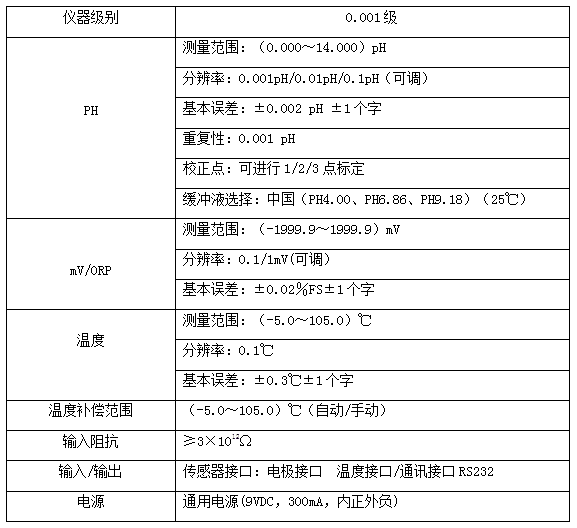 ■产品优势 高分辨率 0.001pH/0.1mV高分辨率设计,可精准测量pH值和离子浓度 防腐 防水 该仪器操作简单 程序化设计 防腐、防水,数码管显示,能适应恶劣测量环境 产品质量可靠 仪器关键部件采用进口元件,采用一体化设计,无运动部件可靠性能高 ■应用领域 环保、农产品、疾控、化工厂、大学及科研 ■三大增值服务 凡使用方舟产品,若有质量问题,主机三年免费保修,半年 凡使用方舟产品,若有质量问题,主机半年包换 凡使用方舟产品,若有应用问题,免费提供解决方案 ■产品特点: 微处理器控制,程序化设计,触摸按键 多种测量模式,能测量溶液的pH、mV、ORP、T值 0.001pH/0.1mV高精度分辨率,使测量精度更可靠 ATC自动识别,自动/手动温度补偿功能 多点自动校准,自动识别标准液,自动终点判断,电极状态指示 断电数据保持,自动存储仪器校准数据 配专用电极转换器适应多种接口和规格的电极 选配离子选择电极能实现精确的离子浓度测量 仪器防腐、防水,能适应恶劣测量环境 ■技术参数