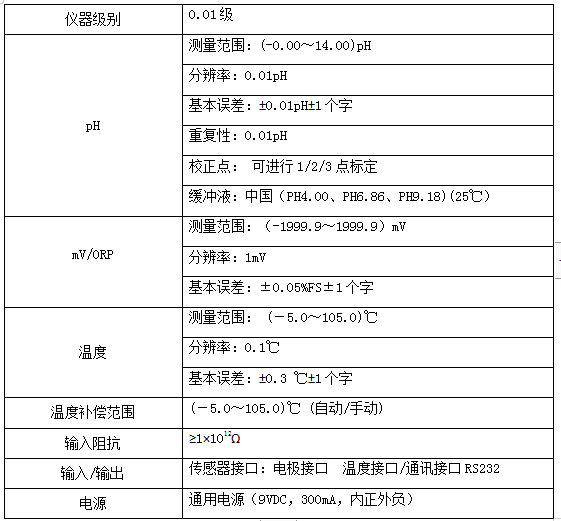 ■ 产品优势 防腐防水 该仪器操作简单程序化设计防腐、防水,数码管显示,能适应恶劣测量环境 产品质量可靠 仪器关键部件采用进口元件,采用一体化设计,无运动部件可靠性能高 ■ 应用领域 环保、农产品、疾控、化工厂、大学及科研 ■ 三大增值服务 凡使用方舟产品,若有质量问题,主机三年免费保修,半年 凡使用方舟产品,若有质量问题,主机半年包换 凡使用方舟产品,若有应用问题,免费提供解决方案 ■ 产品特点: 微处理控制,程序化设计,触摸按键 多种测量模式,PH(mV)值和温度值同步显示 ATC自动识别,自动//手动温度补偿功能 多点自动校准,自动识辨标准液,自动终点判断 断电数据保持,自动存储仪器校正数据 适用多种规格的电极,电极状态指示 RS232数据输出接口 仪器防腐、防水,能适应恶劣测量环境 ■ 技术参数: