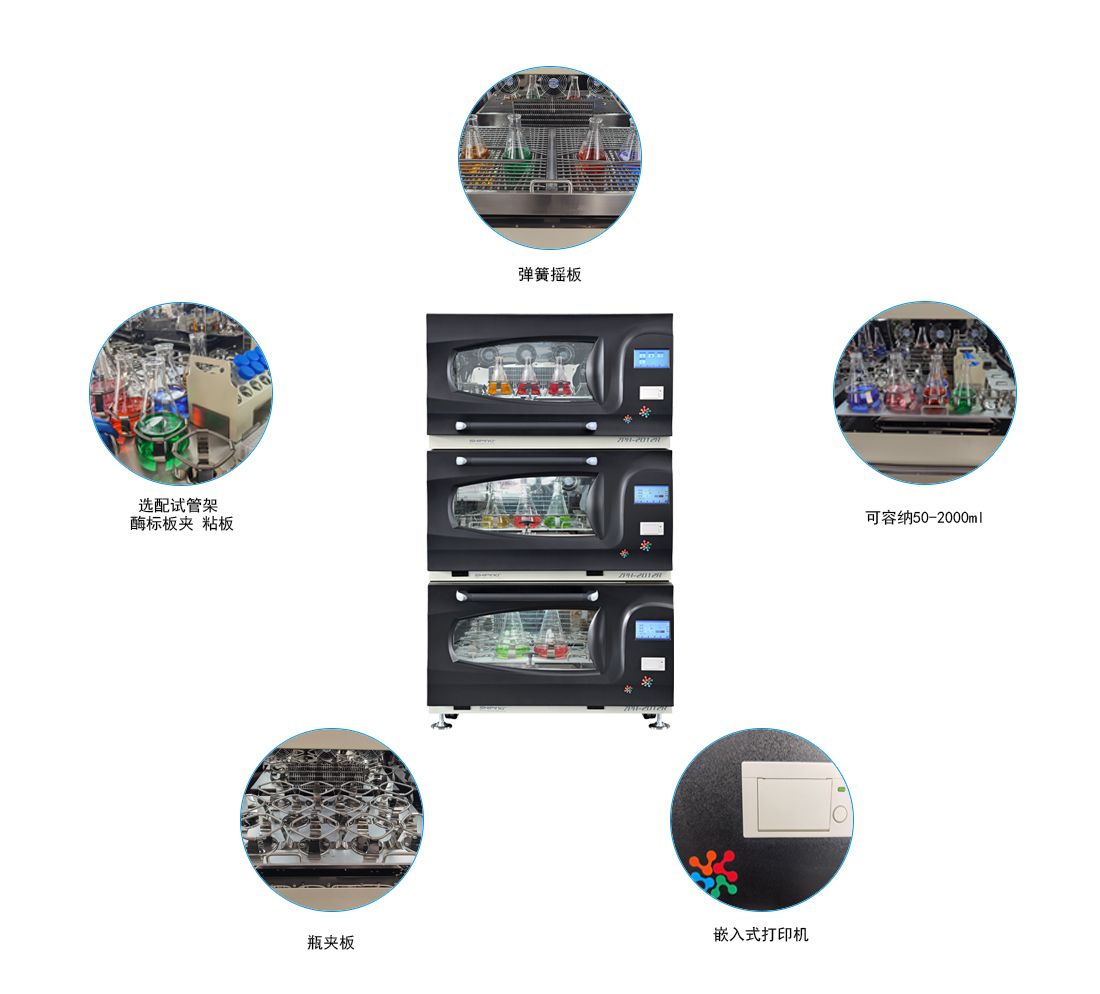 最多三单元叠加,仍然只占用一台摇床的面积。 下翻门设计,便捷的抽拉式托盘,操作灵活。 7寸大屏幕彩色触摸屏,微型打印机、USB接口。 工作室内腔304全不锈钢镜面圆弧转角。 国内**的单轴平衡驱动技术超低静音。 智能化声光报警环境扫描微处理控制器。 LCD大屏幕背光液晶显示屏显示各设定参数和实测参数。 运行参数加密锁定,避免人为误操作。 运行参数记忆功能,避免繁琐操作。 高品质变频电机,震动小、噪音低、效率高、宽调速、免保养、节能、运行持久。 超温声光报警功能,电机过热、温度失控、异常超温仪器自动切断各自供电。 具有断电恢复功能,在外电源突然失电又重新来电后,设备可自动按原设定程序恢复运行。 控制加速的线路确保振荡器缓缓启动、平稳加速、保证实验样品的安全。 极富美学设计理念的流线型豪华整机造型,静电彩色喷塑箱体,钢化双层玻璃视窗。2012R 产品参数