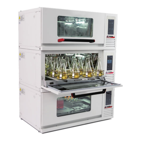本恒温振荡器使用三轴偏心平衡机芯,稳定可靠,使用寿命长。转速控制系统带有速度终端反馈系统,使机器保持高精度振荡。PID控制技术与模糊控制技术的结合和创新,实现了温度范围内的高精度控制。应用变频压缩机制冷,效率高,温度波动小,控制稳定。可选配先进的Wifi监控系统,可多台手机同时远程无线监控同一机器,及时获取无进气等报警信息以快速处理紧急情况,安全保护培养细胞等。适合中试到大试。 参数 | 产品型号 | IS-RDS6 | IS-RDS6T | IS-RDS6C | IS-RDS6C5 | IS-RDS6C5T | | 产品名称 | 叠加式恒温振荡器 | | 主要区别特征 | 401L,全温, 触屏 | 401L,全温,触屏, 上开门 | 401L,全温,带CO2,触屏 | 401L,全温,带CO2,触屏,50振幅 | 401L,全温,带CO2,触屏,50振幅,上开门 | | 摇板尺寸 | 900x560mm | | 最大烧瓶夹/粘贴垫数量 | 烧瓶夹:50mlx135 / 100mlx60 / 150mlx60 / 200mlx60 / 250mlx60 / 500mlx38 / 1000mlx24 / 2000mlx15 / 3000mlx12 / 5000ml(Thomson)x6 粘贴垫:50mlx187 / 100mlx112 / 150mlx104 / 200mlx84 / 250mlx77 / 500mlx40 / 1000mlx28 / 2000mlx15 / 3000mlx15 / 5000ml(Thomson)x8 | | 容量 | 401L | | 最大负载 | 20kg | | 温控范围 | 室温以下 18℃~60℃ (最低4℃) | | 温控精度 | 0.1℃ | | 温度均匀性 | ±0.5℃ (@37℃) | | 旋转转速 | 0 (停止), 30~300rpm | | 转速精度 | 1rpm | | 振幅 | Φ26mm | Φ50mm | | CO2传感器 | 无 | IR (红外线) | | CO2浓度控制范围 | 无 | 0~20% | | CO2浓度控制精度 | 无 | 0.1% | | 开门30s重启后温度恢复时间 | 无 | ≤6min (@37℃) | | 开门30s重启后CO2浓度恢复时间 | 无 | ≤6min (@5%) | | 湿度类型 | 无 | 自然增湿 | | 最大湿度 | 无 | 95% | | 可编程段数 | 12段 | | 照明 | 双向照明 | | 杀菌 | 紫外杀菌 | | 开门方式 | 下开 | 上开 | 下开 | 下开 | 上开 | | 设置参数保护 | 密码保护 | | 曲线显示类型 | 温度曲线、速度曲线 | 温度曲线、速度曲线、CO2浓度曲线、湿度曲线 | | 显示方式 | 电容式, 10寸彩色触控屏 | | 定时范围 | 0~999小时 59分钟 | | U盘导出数据 | 有 | | 屏上可查运行参数天数 | 7天内 | | 运行数据贮存周期 | 多于912天 | | 运行数据贮存时间间隔 | 1分钟 | | 数据贮存内容 | 运行时间、温度参数、速度参数、运行状态 | 运行时间、温度参数、速度参数、湿度参数、运行状态 | | 自动除霜 | 有 | | 自动关闭屏显 | 有 | | 自动锁屏 | 有 | | 第三层摇板高 | 1496mm | | 摇板带导轨 | 有 | | 噪音等级 | ≤55dB (制冷时) | | 可水冲洗 | 是 | | 界面语言 | 可切换中文、英文显示 | | 来电自动恢复功能 | 是 | | 加热功率 | ≤850W | | 制冷功率 | 70~180W(变频制冷) | | 功率 | ≤950W | ≤1000W | | 电源 | AC 220V±22V,50Hz / 60Hz | | 主动加湿(选配) | 无 | 环境湿度以上10%~95% 选配 | | WiFi手机监控(选配) | 选配 | | 电脑监控(选配) | 选配 | | 遮光板(选配) | 选配 | | 净重 | 315kg | 320kg | | 内腔工作高度 | 335mm | | 外形尺寸 | 1400x886x (600+80地脚高)mm | 1400x886x (648+80地脚高)mm | 1400x886x (600+80地脚高)mm | 1400x886x (648+80地脚高)mm |