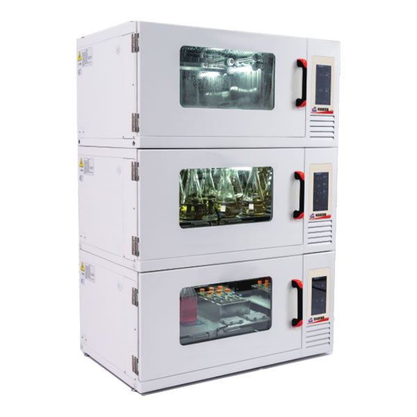 IS-AX恒温振荡器使用三轴偏心机芯,稳定可靠,使用寿命长。转速控制系统带有速度终端反馈系统,使机器保持高精度振荡。PID控制技术与模糊控制技术的结合与创新,实现了温度范围内的高精度控制。应用变频压缩机制冷,效率高,能耗小, 制冷更精确,控制更稳定。可6段编程运行,实现同一种样品在不同环境条件下和不同运行时间来自动创造所需求的环境。适合小试和中试。 参数 | 产品型号 | IS-AX | | 产品名称 | 叠加式恒温振荡器 | | 主要区别特征 | 190L,全温, 触屏 | | 摇板尺寸 | 550x470mm | | 最大烧瓶夹/粘贴垫数量 | 烧瓶夹:50mlx72 / 100mlx30 / 150mlx30 / 200mlx30 / 250mlx30 / 500mlx19 / 1000mlx12 / 2000mlx8 / 5000 (Thomson)mlx4 粘贴垫:50mlx80 / 100mlx42 / 150mlx42 / 200mlx30 / 250mlx30 / 500mlx20 / 1000mlx12 / 2000mlx8 / 5000ml (Thomson)x4 | | 容量 | 190L | | 最大负载 | 10kg | | 温控范围 | 室温以下 18℃~60℃ (最低4℃) | | 温控精度 | 0.1℃ | | 温度均匀性 | ±0.3℃ (@37℃) | | 旋转转速 | 0 (停止), 30~300rpm | | 转速精度 | 1rpm | | 振幅 | Φ26mm | | 开门30s重启后温度恢复时间 | ≤6min (@37℃) | | 湿度类型 | 无 | | 最大湿度 | 无 | | 可编程段数 | 6段 | | 照明 | 双向照明 | | 灭菌 | 紫外杀菌 | | 开门方式 | 左开 | | 设置参数保护 | 密码保护 | | 曲线显示类型 | 温度曲线、速度曲线 | | 显示方式 | 电容式, 7寸彩色触控屏 | | 定时范围 | 0~999小时 59分钟 | | U盘导出数据 | 有 | | 屏上可查运行参数天数 | 7天内 | | 运行数据贮存周期 | 多于912天 | | 运行数据贮存时间间隔 | 1分钟 | | 数据贮存内容 | 运行时间、温度参数、速度参数、运行状态 | | 自动除霜 | 有 | | 自动关闭屏显 | 有 | | 自动锁屏 | 有 | | 第三层摇板高 | 1315mm | | 摇板带导轨 | 有 | | 噪音等级 | ≤55dB | | 可水冲洗 | 是 | | 驱动 | 电机驱动 | | 界面语言 | 可切换中文、英文显示 | | 来电自动恢复功能 | 是 | | 加热功率 | ≤600W | | 制冷功率 | 70~180W(变频制冷) | | 功率 | ≤780W | | 电源 | AC 220V±22V,50Hz / 60Hz | | WiFi 手机监控(选配) | 选配 | | 电脑监控(选配) | 选配 | | 遮光板(选配) | 选配 | | 净重 | 170kg | | 内腔工作高度 | 305mm | | 外形尺寸 | 970x780x(530+80 地脚高)mm |