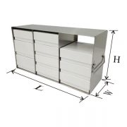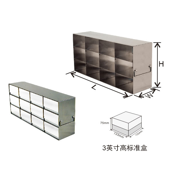 立式低温分隔架可存放纸盒、塑料盒和各种金属盒,由高品质的耐腐蚀不锈钢材料制成,设有手柄和识别卡插槽。该产品使实验样品的存取和管理更为有序,带抽屉的分隔架在推拉抽屉的同时,即可轻松存取实验样品,无须从冰箱中搬移整个分隔架。每个分隔架均有适合的安全锁定装置匹配。按照上图的示意,测量出您所使用冰箱的内部尺寸,通过这些尺寸,即可确定适合您立式冰箱的分隔架的高度(H)、长度(L)和宽度(W)。 参数
