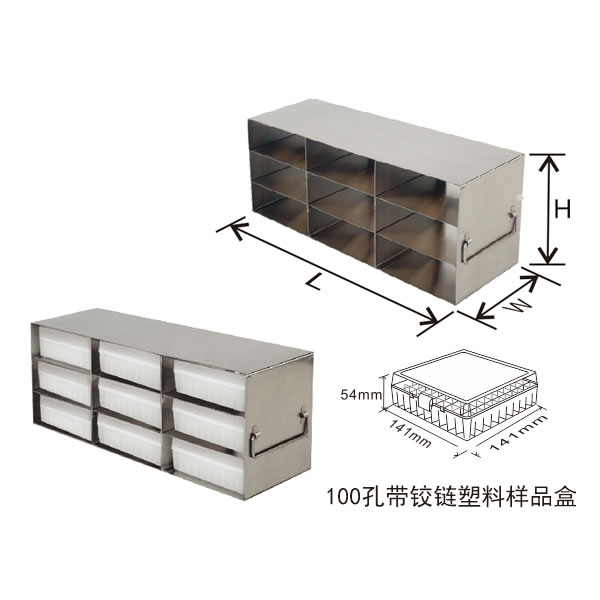 存放100孔带铰链塑料样品盒的立式冰箱分隔架-UFHT型
