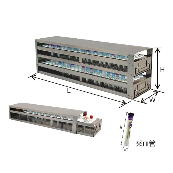 立式低温分隔架可存放纸盒、塑料盒和各种金属盒,由高品质的耐腐蚀不锈钢材料制成,设有手柄和识别卡插槽。该产品使实验样品的存取和管理更为有序,带抽屉的分隔架在推拉抽屉的同时,即可轻松存取实验样品,无须从冰箱中搬移整个分隔架。每个分隔架均有适合的安全锁定装置匹配。按照上图的示意,测量出您所使用冰箱的内部尺寸,通过这些尺寸,即可确定适合您立式冰箱的分隔架的高度(H)、长度(L)和宽度(W)。 参数 | 型号 | 描述 | 容量 | 锁定装置 | | UFD-T10-1 | 存放8ml,8.5ml,10ml试管的带1层抽屉的分隔架 | 60只8ml,8.5ml或10ml试管 | DD-04 | | UFD-LT10-1 | 80只8ml,8.5ml或10ml试管 | | UFD-T10-2 | 存放8ml,8.5ml,10ml试管的带2层抽屉的分隔架 | 120只8ml,8.5ml或10ml试管 | DD-06 | | UFD-LT10-2 | 160只8ml,8.5ml或10ml试管 | | UFD-T06-1 | 存放4ml,4.5ml,6ml, 7ml试管的带1层抽屉的分隔架 | 85只4ml,4.5ml或7ml试管 | DD-04 | | UFD-LT06-1 | 115只4ml,4.5ml或7ml试管 | | UFD-T06-2 | 存放4ml,4.5ml,6ml, 7ml试管的带2层抽屉的分隔架 | 170只4ml,4.5ml或7ml试管 | DD-06 | | UFD-LT06-2 | 230只4ml,4.5ml或7ml试管 | | UFD-T03-2 | 存放3ml试管的带2层抽屉的分隔架 | 180只3ml试管 | DD-03 | | UFD-LT03-2 | 250只3ml试管 | | UFD-T03-3 | 存放3ml试管的带3层抽屉的分隔架 | 270只3ml试管 | DD-06 | | UFD-LT03-3 | 375只3ml试管 | | UFD-T01-2 | 存放1ml试管的带2层抽屉的分隔架 | 240只1ml试管 | DD-03 | | UFD-LT01-2 | 324只1ml试管 | | UFD-T01-3 | 存放1ml试管的带3层抽屉的分隔架 | 360只1ml试管 | DD-06 | | UFD-LT01-3 | 486只1ml试管 |