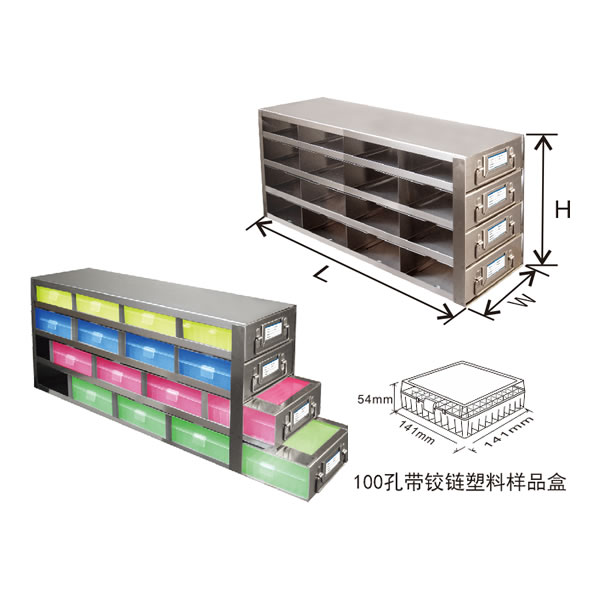 存放100孔带铰链塑料样品盒的立式冰箱分隔架-UFDHT型