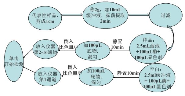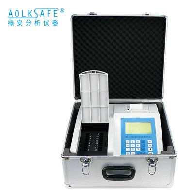 在一定条件下,有机磷和氨基甲酸酯类农药对胆碱酯酶正常功能有抑制作用,其抑制率与农药的浓度呈正相关。 正常情况下,酶催化神经传导介质水解,其水解产物与显色剂反应,产生黄色物质,用 GNSPRD-16农药残留快速测试仪 测定吸光度随时间的变化值(△ A)计算出抑制率(I),通过抑制率可以判断出样品中是否有高剂量的有机磷 液晶显示屏+按键