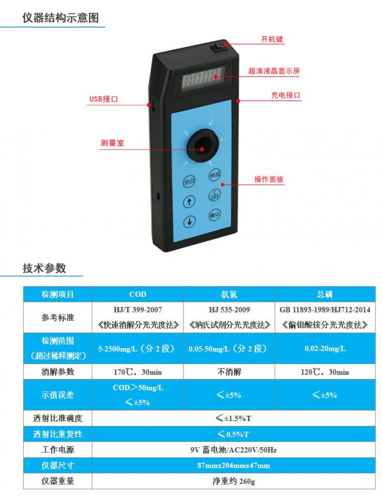 外观尺寸:87mm×204mm×47mm 净重:0.26kg