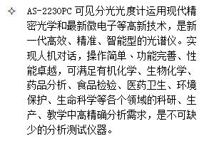 1. 仪器全塑机壳,流线型外观设计,表面经过特殊处理,抗氧化. 2. 内部微处理器对电源、线路、光源等进行自诊断。 3. 检测项目扩展性强:可根据用户需求进一步升级到更多检测项目。 4. 采用低杂散光,高分辨率真的单光束光路结构,仪器具有良好的稳定性,重现性。应用**微机处理技术,使操作更为简便,几个按键就能完成测试,并具有自动调校0%T和100%T等控制功能及多种方法的数据处理功能。 5. LCD数字显示器可显示透射比、吸光度和浓度等参数,提高了仪器的读数准确性。 6. 打印输出,标准并行打印口,可直接连接打印机,打印实验数据。 7. 标准RS-232通讯接口,可通过绿安用户应用软件和普通的装有Microsoft Windows系统的个人电脑联机,进行实验测试和数据处理。 配备数据处理软件,可联机操作 界面人性化,人机对话便捷![]()