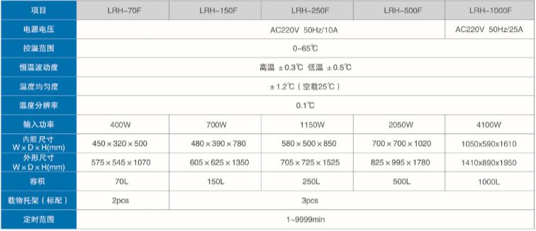 1、用途概述 适用于环境保护、卫生防疫、药检、农畜、水产等科研、院校、生产部门。是水体分析和BOD测定,细菌、霉菌、微生物的培养、保存、植物栽培、育种试验的专用恒温设备。 2、产品特点 n 人性化设计 ⊕大屏幕液晶显示,多组数据一屏显示,菜单式操作界面,简单易懂,便于操作。(标配) ⊕采用镜面不锈钢内胆,四角半圆弧设计易清洁,箱内搁板间距可调。 ⊕致力于世界环保健康倡议,使用134a无氟制冷剂,高效,节能,令环境更健康! ⊕箱体左侧有一直径25mm/50mm的测试孔,便于实验操作与测量温度。(选配) n 品质保证 ⊕采用国际品牌压缩机,自主研发的压缩机降温系统,可有效延长压缩机使用寿命。 ⊕采用JAKEL管流循环风机,配上独特设计的风道结构,制造出良好的空气循环系统,有效保证箱内温度均匀性。 ⊕PID控制方式,控温精确波动小,带定时功能,时间最大设定值99小时99分钟。 ◆ 智能化液晶可编程多段控制器(选配) ⊕可预设15段30步可编程序,每段设置时间1~99小时99分钟。 ⊕多段可编程控制,简化复杂的试验过程,真正实现自动控制和运行。 ◆独立限温报警系统(选配) ⊕超过限制温度即自动中断运行,并声光报警提示操作者。保证实验安全运行不发生意外。 ◆方便的数据处理(选配) ⊕具有USB或RS485接口,可连接打印机或计算机,能记录温度参数的变化状况。(选配) 3、选配件 智能型程序控制器 独立限温控制器 BOD专用插座 嵌入式打印机 RS485接口和专用软件 测试孔25mm/50mm 4、技术参数