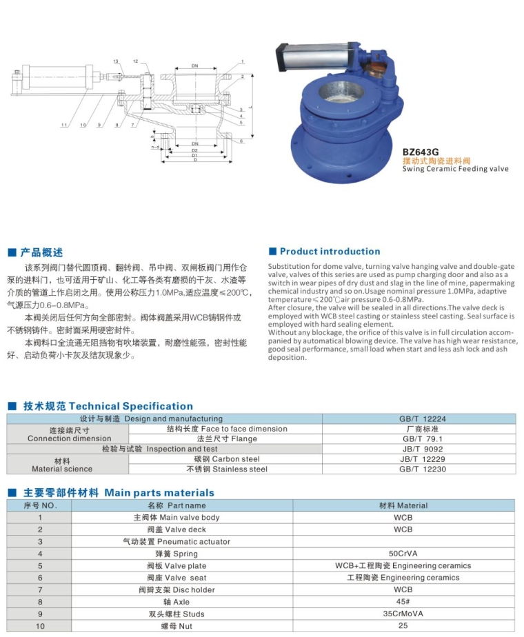 BZ643G摆动式陶瓷进料阀
