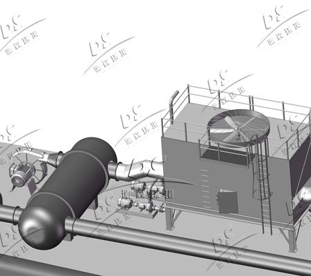 热交换器系统是配套二燃室使用的热能交换装置。通过水冷或空冷方式,把二次燃烧室排出的高温气体循环利用,尾气降温后进入二级袋式除尘系统处理后直接排空。