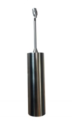 1.将固定支架(将固定支架上一个固定螺钉方向对着自己)装在粘度计保护罩下方连接处上(向右旋入装上,向左旋出卸下) 2.将0号转子穿过固定支架,0号转子上的连接头旋入粘度计上的连接螺杆;(向左旋入装上,向右旋出卸下) 3.在量筒内装入适量(大约30ml)被测液后从固定支架下面往上装入到底位置,然后用三个螺钉固定在支架上,仔细观察被测液面恰好超过零号转子锥体表面; 4.按《粘度计使用说明书》要求设置粘度计上的转子号和转子转速(建议转子转速应该不低于30转/分)。即可测量被测液体粘度。 |