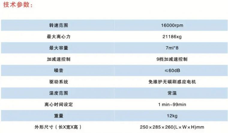 SF-TGL-16G台式高速离心机功能特性: 1.微机控制,操作方便; 2.免维护无碳刷感应电机; 3.独立设定离心力(不用转速再换算离心力); 4.升速时间:15s,降速:20s; 5.电子门锁和机械应急开关,无电源时同样打开; 6.多种不同的升降速率可选择; 7.本机有计时功能; 8.停止后,自行打开电子门锁; 台式高速离心机功能特性: 1.微机控制,操作方便; 2.免维护无碳刷感应电机; 3.独立设定离心力(不用转速再换算离心力) 4.升速时间:15s,降速:20s 5.电子门锁和机械应急开关,无电源时同样打开; 6.多种不同的升降速率可选择; 7.本机有计时功能; 8.停止后,自行打开电子门锁;