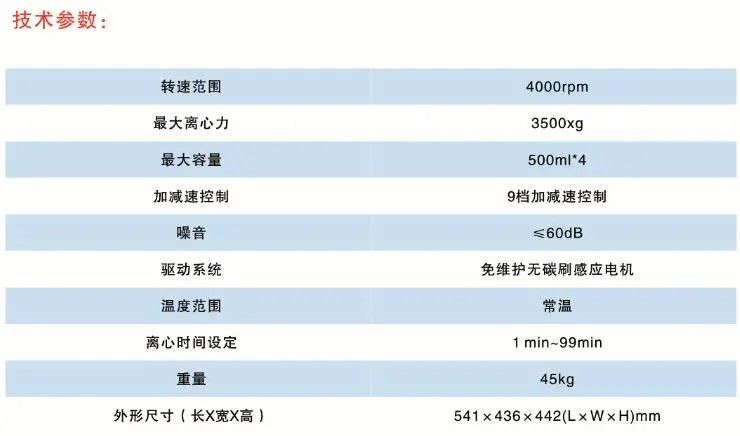 台式低速离心机SF-TDL-420产品安全性: 1.机体采用强固的钢结构,安全可靠。 2. 不锈钢内腔和钢板保护腔双重保护。 3. 采用发泡隔音。 4. 采用安全电机电动静音门锁 台式低速离心机功能特性: 1.微机控制,操作方便; 2.免维护无碳刷感应电机; 3.内部钢结构不锈钢内腔; 4.独立设定离心力(不用转速再换算离心力); 5.电子门锁和机械应急开关,无电源时同样打开; 6.多种不同的升降速率可选择; 7.本机有计时功能; 8.转速停稳有蜂鸣提示; 9.停止后,自行打开电子门锁; SF-TDL-420台式低速离心机安全性结构: 1. 机体采用强固的钢结构,安全可靠。 2. 腔体采用304不锈钢。 3. 离心内腔有不锈钢,钢板保护腔和发泡隔音,外加钢板外壳三层安全保护。 4. 盖门采用坚固的电动安全门锁。