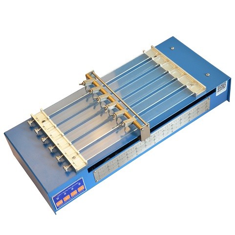 六个带半球型触点的划杆,安装在滑架上。 划杆由滑架带动,与新涂膜层接触,由一端开始,在试样上作纵向移动。 可通过仪器边缘的刻度尺测量移动时间,对应观察轨迹的各个干燥阶段。 涂层预先涂布在宽23mm和长340mm的玻璃条上,利用方形制备器进行涂布。 干燥时间记录仪原理根据数学公式: 距离=速度×时间。 符合标准 ASTM D5895 技术参数