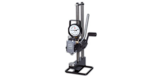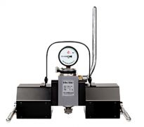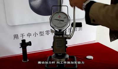 采用液压原理,手动操作产生3000 kgf试验力。核心部件是一个小型液压系统,液压系统中有一个控制阀,用于控制试验力,每当试验力达到3000 kgf时,控制阀打开,压力下降。按照美国标准ASTM E110的规定,要重复加力3~4次,让压力表指针3~4次达到3000 kgf,以此等效布氏硬度试验方法中关于3000 kgf试验力,10 mm球,加力10-15秒的规定。