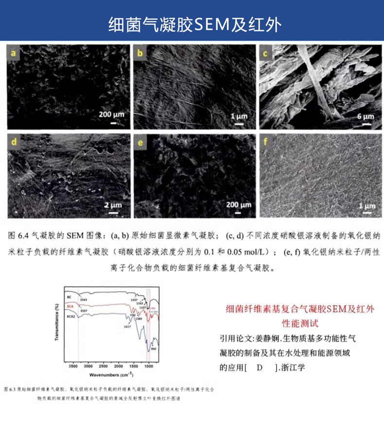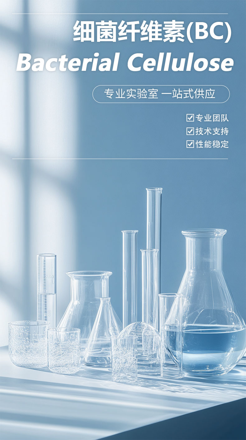 BC细菌纤维素是以糖类为原料,经醋酸胶膜杆菌生物发酵得到的超高长径比的纤维状纳米材料。纤 维直径在 50~100nm,长度大于 20um,吸水率约 200 倍左右。其凝胶强度大,保水性能好,是 理想的化妆品及医药的载体材料。同时自身具有超长的晶区结构,其力学强度远远超过一般植 物纤维,是理想的增强材料。