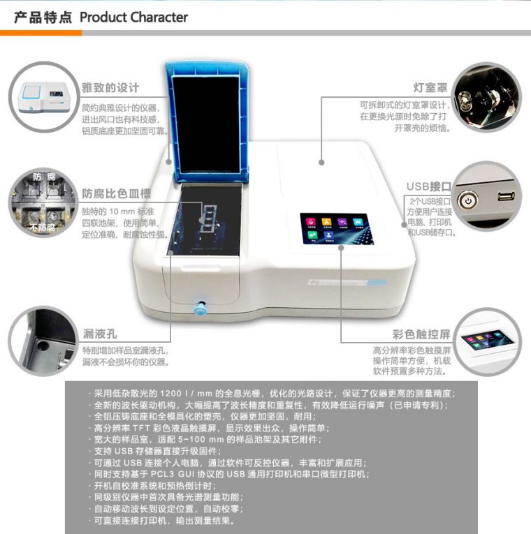 P3 单光束 紫外可见分光光度计。通过简单的参数设定,方便地进行光度分析、定量分析、动力学测试,配合专业的Mapada的扫描分析软件,可实现全波长光谱扫描、多波长测试。