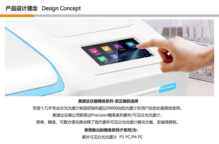 P3 PC 经济型 紫外可见分光光度计。通过简单的参数设定,方便地进行光度分析、定量分析、动力学测试,配合专业的Mapada的扫描分析软件,可实现全波长光谱扫描、多波长测试。