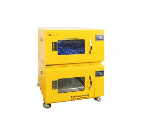 性能概述: 1、一层、二层或三层叠加组合,以最小的占地面积为用户提供***使用空间 2、三维一体的偏三轮驱动,运转平滑、稳定、耐久、可靠 3、具有超温报警功能及异常情况自动断电功能 4、具有断电恢复功能,避免因停电、死机而造成的数据丢失问题 5、中空钢化玻璃门,不锈钢无螺丝固定,整体更加美观、整洁,方便随时在不开门情况下在各个角度观察箱体内部情况 6、流线型外观,美观大方;内衬采用圆弧角(R角)镜面不锈钢设计,便于清洁,不易滋生细菌、防腐蚀;外壳采静电喷塑 7、精选进口优质压缩机,无氟环保制冷剂,噪音低、制冷效果好,确保设备在低温状态下长时间稳定运行 8、配备滤波器磁环,减少外界和自身对机器稳定性的干扰 9、人性化设计的开门即停功能,使用更加安全便捷 10、具有紫外线灭菌功能 独特性能: 1、摇床内胆采用无缝焊接技术,底部可进行全方位无死角冲洗,无需专用工具,清理方便 2、LCD触摸屏,设定温度、转速、时间和实测温度、转速、剩余时间在同一界面显示,不用相互切换界面,观察更直观;操作界面加密锁定功能,杜绝重复操作和人为误操作;可自由设定摇板正转或反转;强制对流的风扇常开或自动;拥有数据记录功能,每分钟记录一次数据,可记录近三个月的数据;有USB接口,可将上述数据导出并保存 3、配备高质伺服电机,控制速度精确、高速性能好、稳定性强 4、独特定时除霜功能,1~89分钟可自由设定,除霜间隔30~600分钟可调,能确保长时间在低温状态下运行时蒸发器不结冰 5、专业设计的侧面透气孔,满足样品对氧气的需求 6、夹具为一次成型塑胶夹具,方便单手取放摇瓶 7、产品升级方案:可选配光照系统,型号:ZQZY-98BGE。光照强度可高达16000LX ,高效节能,光效率高,1%-100%步进1%可调(1%、2%、3%—100% )使用寿命超长(可升级多种光源) 技术参数: