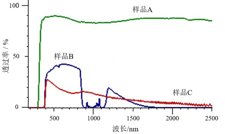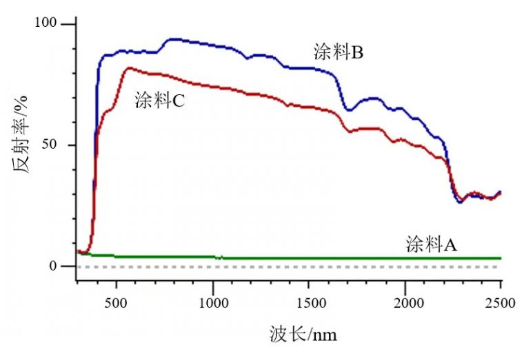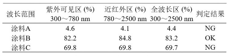 可见光透过率及太阳光透过率的计算结果 太阳光反射率的测定UH5700紫外分光光度计加装φ60积分球附件,根据JIS K 5675测定了3个不同的涂料样品的反射率,依据JIS K 5675,计算出太阳光反射率并判断样品特性。