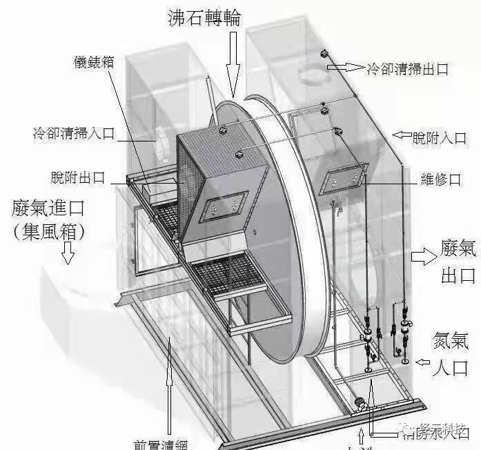 分子筛沸石转轮一体机利用吸附-脱附-浓缩焚化连续性过程,对VOCs废气进行处理净化,具有应用范围广、性能高、运行稳定等优点。但在不同的实际应用场合,废气成分复杂,容易发生高沸点VOCs残留聚合和闷燃现象。 装置特点与优势 1、高吸、脱附效率,使原本大风量、低浓度的VOCs废气转换成小风量、高浓度的废气,降低后端终处理设备(RCO、RTO)的成本。 2、沸石转轮吸附VOCs所产生的压损极低,可大大减少吸附风机电力能耗。 3、浓缩倍数达到5~20倍,大大缩小后处理设备的规格尺寸,降低运行成本。 4、整体系统采预组及模块化设计,具有占地面积小且拥有无人化操控模式的优点。 5、经过转轮浓缩后的废气,可达到国家排放标准。 应用行业 各种印刷车间(凹版印刷、建筑装潢材料印刷、其他各种印刷过程)的排气处理; 半导体集成电路制造过程的排气处理; 液晶显示屏(LED)制造过程的排气处理; 锂离子电池制造(电极形成工序、电解液充填工序)的排气处理; 大型研究设施的通风处的排气处理; 干法层压纸制品、镀膜加工过程的排气处理; 各种电子制品制造过程的排气处理; 各种喷漆车间(汽车制造、造船、飞机制造、钢铁制品、树脂制品等等)的排气处理。 |