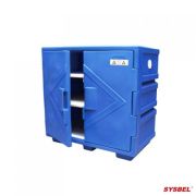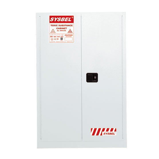由双层18 Ga(1.2-mm)钢板通过点焊接构造,两层之间相隔38mm的形成良好的防火绝缘层; 左右两侧设置通风孔保持柜内空气流通,降低挥发的毒性气体浓度,可选择安装通风管道疏导有毒有害气体; 独有的防溢式层板防止意外泄漏的化学品四溢,层板可以依据用户需求任意调节,存储更多的化学品容器等,每隔6.5cm; SYSTEX内嵌式三点联动锁减少摩擦或机械火花,降低静电积蓄; 安全挂锁配置(选配),实现双人双锁管理,符合中国《危险化学品安全管理条例》的规定; 树脂粉末涂料处理,表面光亮,防尘,防锈和防潮; 2"(53mm)深的盛漏槽防止泄漏的液体外溢,符合盛漏规范; 连续的琴式铰链使得柜门平稳闭合开启; 醒目的标签可以在能见度较低的光线下辨识,提供了额外的安全保障; 细节展示