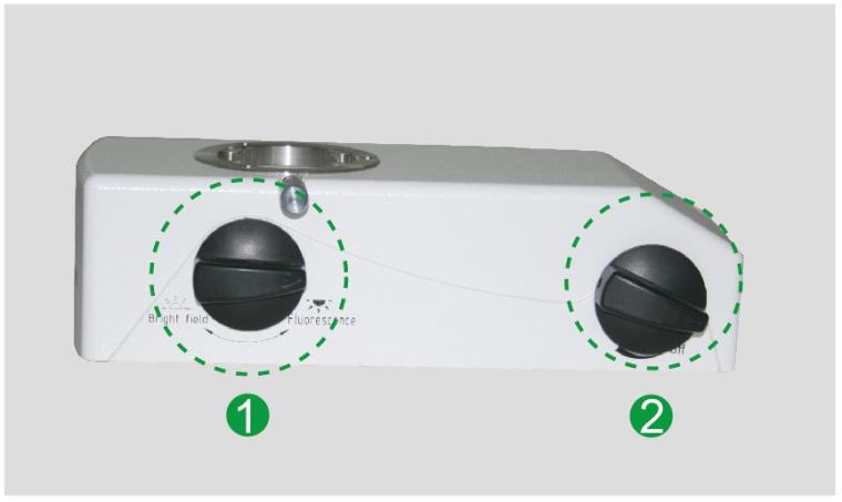 1. 明场/荧光切换 根据实际应用要求,旋转明场/荧光切换旋钮,可实现两种观察方法的切换。 2. 亮度调节旋钮