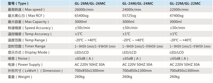 LCD显示:大屏幕彩色液晶中英文显示,转子号,转速,离心力,温度,时间,升速率,降速率,程序设置值与实际值同时显示,实时运行状态显示,直观明了,36种程序存储功能,程序可编,可存,可取。