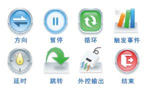 · 提供8种逻辑控制模块:方向、延时、事件触发、状态输出、暂停、跳转、循环、停止