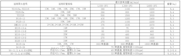 L600-1FS:转速范围:0.1-600rpmCW/CCW,正反转可逆,调整分辨率:转速<100rpm时分辨率为0.1rpm,转速>=100rpm时分辨率为1rpm,流量范围:0.15ul/min-3000ml/min