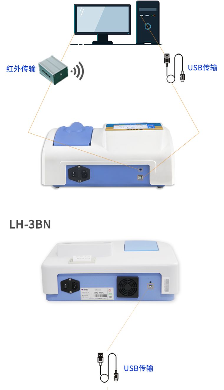 5、数据传输:两款仪器均可向计算机传输当前数据和所有存储的历史数据,支持USB传输、红外无线传输(可选);