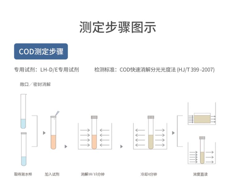 1.4测定范围:(50-800)mg/L(>800mg/L时稀释测定)