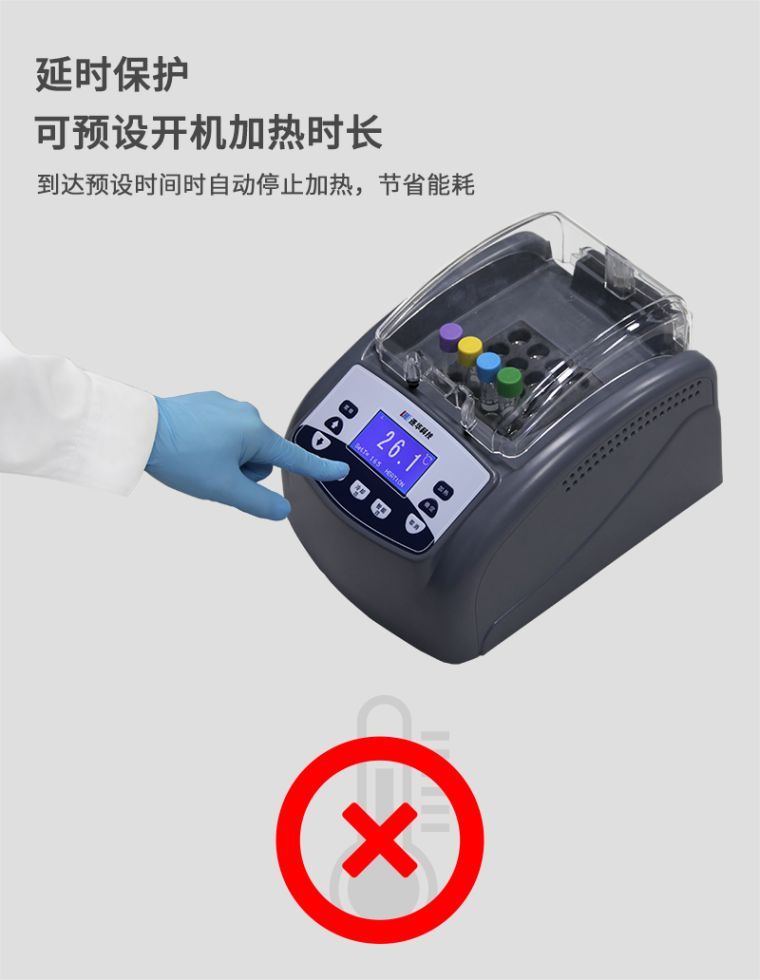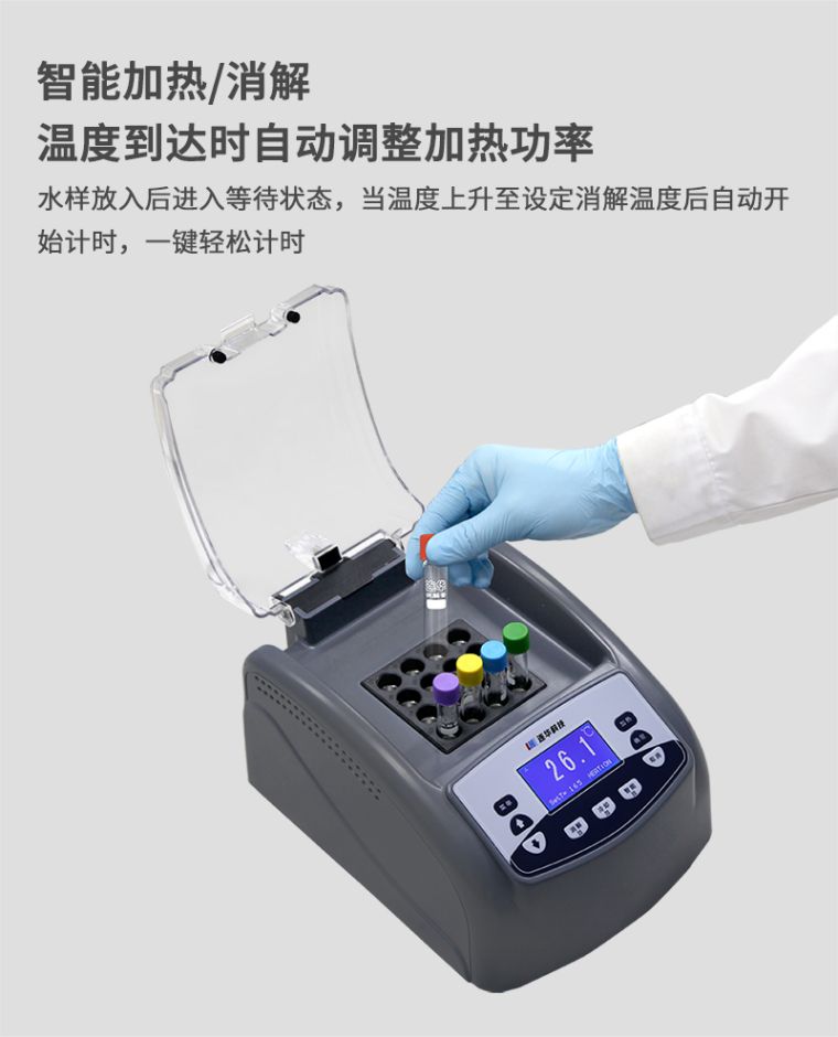 7.智能消解:水样放入后进入等待状态,当温度上升至设定消解温度后自动开始计时,,使用户一键轻松计时;