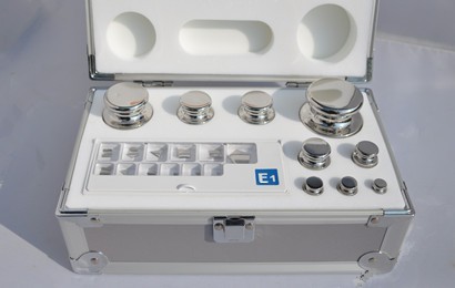 选购砝码注意事项: 十万分之一天平(精度0.01mg天平)需要用E2/E1级砝码校正 万分之一天平(精度0.1mg天平)需要用E2级砝码校正或F1砝码校正 千分之一天平(精度1mg天平)用F1等级砝码校正 百分之一天平(精度0.01克天平)用F2等级砝码校正 十分之一天平(精度0.1克天平)用M1等级砝码校正 大吨位电子称或磅秤用M1等级铸铁砝码校正 砝码使用提示: 1、砝码使用前,先用专用清洁刷和擦拭布将砝码表面的灰尘等污渍清洁掉。 2、严禁用手直接触摸砝码。 使用砝码时,请戴上专用手套,用专用工具夹取砝码。 (手套及工具请见“砝码附件”) 3、在天平检测或砝码比对前,砝码都需要恒温以达到实验室的大气状况, 否则会对检测结果造成影响。 4、砝码使用后,必须贮存在原配包装盒内。