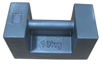 高品质铸铁: 生产标准:OIML-R111,JJG99-2006砝码检定规程 材质:铸铁 结构:顶部调整/侧边调整 密度:7.2g/cm3 形状:锁型 允差(±mg):500 砝码尺寸(L*W*H)mm:190*95*109
