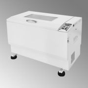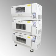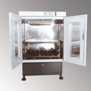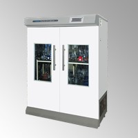 双层恒温摇床节约空间占地小、容量更多、效率高等特点。DLHR-Q500/800是双开门大型摇床,适用于生物工程、制药、化工等部门从事大规模培养微生物与细胞组织之用。 产品特点: ※立式双层结构,占地小、载瓶量大 ※真彩触摸式显示屏,状态、温度实时显示与设置,多天运行记录可查询; ※侧面有透气孔,满足样品对氧气的需求; ※制冷系统采用精密阀控变容量机组,制冷输出功率连续可调,直接控制蒸发器温度,保证系统控温平稳、顺滑、准确; ※温度采用PID式模糊控制,具有温度校正功能,满足不同温度测试点要求 ※具有预约控制功能,内置可单独编程的20个预约时段,方便用户模拟全天候工况; ※具有定时功能:0~500小时内任意设定培养时间; ※采用特种的交流感应长寿命电机,宽调速、恒力矩、恒转速、无碳刷、免保养;单独设计控制电机工作的硬件开关,当出现危险情况后及时断开开关保证人员安全。 ※机芯采用自主研发的多轴同步式,高精度加工手段加工,具有强度高、使用寿命长、噪音低、免维护等优点。 ※霍尔测速装置,转速测定精确可靠; ※门禁与照明、转速互锁功能,用户可按自己要求设置开门电机是否停转,照明灯是否开启,开门超时是否报警; ※超温超速报警功能。超过设定温度3°或超过设定转速50rpm,自动报警,并自动断电。 ※具有断电恢复功能,避免因停电、死机而造成的数据丢失问题。
