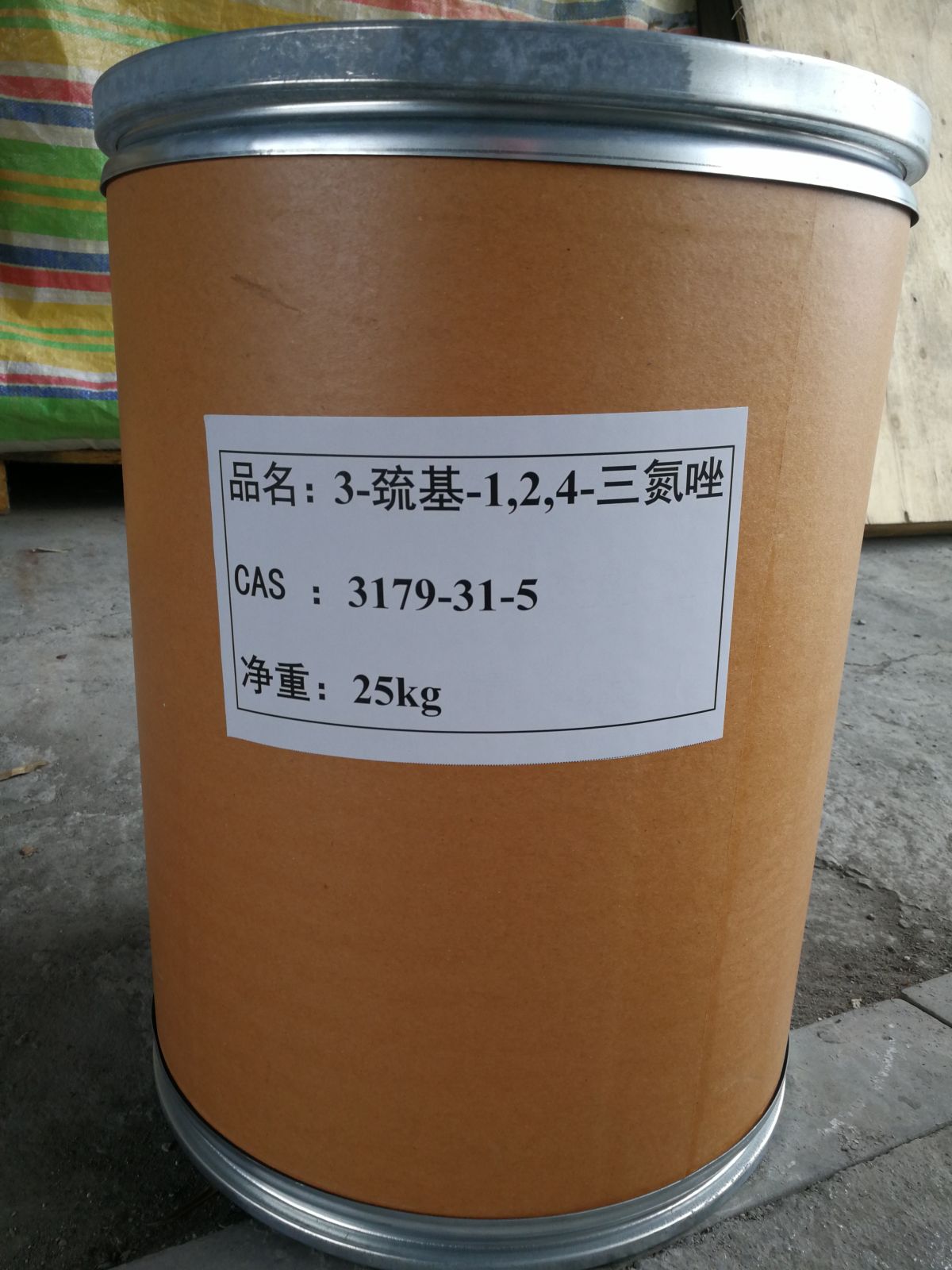 CAS:3179-31-5 分子式:C2H3N3S 分子量:101.13 产品性质:白色或浅黄色结晶粉未,可溶于水和乙醇,常温常压不易分解。 规格:主含量:≥99% 熔点:221℃~224℃ 干燥失重:≤0.5% 3-巯基-1、2、4-三氮唑; 3-巯基-1,2,4-三氮唑; 3-巯基-1,2,4-三唑,97.0%(GC&T; 3-巯基-1,2,4-三氮唑,巯基三氮唑; 4-三氮唑-3-硫醇 英文名称:1H-1,2,4-Triazole-3-thiol 化学性质 白色结晶粉末。 贮存:存于阴凉干燥的地方,隔绝火源及强氧化剂。 包装:纸板桶,内衬塑料袋,25 Kg/桶;或依客户要求。 用途:用作医药中间体、照相显影剂、防锈添加剂等
