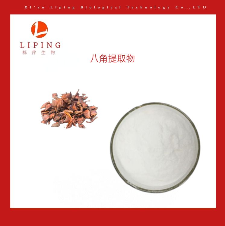 【产品名称】:八角茴香提取物 【英文名称】:Star anise, Illicium verum, ext. 【有效成分】:莽草酸 【成分英文】:Shikimic Acid 【分子式】:C7H10O5 【分子量】:174.15 【CAS号】:138-59-0 【EINECS登录号】:205-334-2 【提取来源】:木兰科植物八角茴香Illicium verum Hook. f. 的干燥成熟果实 【使用部位】:果实 【分布地区】:主产于广西西部和南部 【产品规格】:98% 【检测方法】:HPLC 【产品外观】:白色粉末 【物理性质】:易溶于水,水中的溶解度18g/100ml 【储存方法】:密封于阴凉、干燥处保存 【包 装】:铝箔袋1kg/袋,25kg/桶或根据客户要求 【保 质 期】:24个月