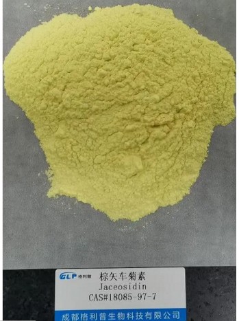 【产品名称】棕矢车菊素 【英文名】 Jaceosidin 【分子式】 C17H14O7 【分子量】 330.292 【CAS号】 18085-97-7 【提取来源】本品来源于艾叶当中 药材鉴别 ( 1) 本品粉末绿褐色。非腺毛有两种:一种为 T 形毛,顶端细胞长而弯曲,两臂不等长,柄 2〜4 细胞;另一 种为单列性非腺毛, 3〜5 细胞,顶端细胞特长而扭曲,常断落。腺毛表面观鞋底形,由 4、 6 细胞相对叠合而成,无柄。草酸钙簇晶,直径 3〜7 产 m,存在于叶肉细胞中。 ( 2) 取本品粉末 2g,加石油醍( 60〜90°C) 25ml,置水浴上加热回流 30 分钟,滤过,滤液挥干,残渣加正己烷 1ml 使溶解,作为供试品溶液。另取艾叶对照药材 lg,同法制成对照药材溶液。照薄层色谱法(通则 0502) 试验,吸取上述两种溶 液各 2〜5 卩1,分别点于同一硅胶 G 薄层板上,以石油醍( 60〜 90°O-甲苯-丙酮( 10 : 8 : 0.5) 为展开剂,展开,取出,晾干, 喷以 1%香草醛硫酸溶液,在 105°C 加热至斑点显色清晰。供 试品色谱中,在与对照药材色谱相应的位置上,显相同颜色的主斑点。 |
