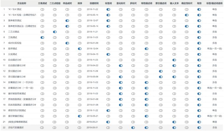 感官分析软件系统-CSAS-技术参数(部分) 1、功能模块 (1)感官检验(主体功能模块):至少含差别检验、标度检验、描述性分析、消费者测试等4类22种感官分析方法检验;每种方法具有实验设计、样品准备、过程评价与结果分析功能; (2)信息查询:含历史实验查询、感官分析方法简介. (3)系统维护:含通用实验信息维护、食品代码维护、实验人员信息维护、系统使用权限管理。 2、性能特点 (1)中文操作系统; (2)按照B/S结构设计,只需安装在服务器上,即可在局域网多台电脑通过浏览器访问; (3)按照感官评价员、感官分析师与系统管理员进行角色划分与权限管理,可批量导入评价员信息; (4)显示样品制备表、样品提供表、评价员回答表、评价结果汇总表、评价结果统计表、感官检验报告; (5)设置评价员休息时间; (6)不同级别评价员人员信息管理; (7)历史实验内容查询; (8)评价员在线提交评价结果; (9)感官分析师动态、实时查看评价员的实验结果; (10)内置数学统计算法,自动进行结果统计。 3、技术参数 (1)软件环境:操作系统支持多种操作系统,如windows 2000、windows 7、windows 10等; (2)网络环境:浏览器支持多种浏览器环境,如IE6.0、IE8.0、360浏览器、搜狗浏览器、Google浏览器等主流浏览器; (3)支持海量数据的处理; (4)支持100用户并发量。 (5)应用领域:水产品及其制品、蛋及蛋制品、冷冻饮品、水果、蔬菜、豆类、食用菌、藻类、坚果、肉及肉制品、粮食及粮食制品、烘培食品、乳及乳制品、调味品、脂肪、油和乳化脂肪制品、饮料类、酒类、可可制品等 4、配套服务 (1)现场安装及配置系统; (2)系统操作使用培训; (3)系统用户操作手册及实验流程演示视频; (4)感官分析标准化技术知识培训; (5)软件/数据库内无加费项目,全部都可以正常使用;如有后续更新,免费升级。